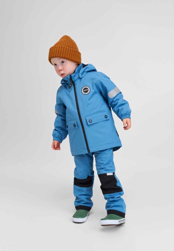 Symppis ReimaTec kids’ waterproof jacket with light insulation is in a classic style, with a straight fit and big reflective details. Safe, detachable hood with rib edge to cover the head from wind, elastic cuffs to keep the cold at bay and big flap pockets to keep your treasures safe – all these features are designed to protect your little adventurer from any inclement weather. Part of the fibers in this kids’ lightly insulated waterproof jacket are recycled.