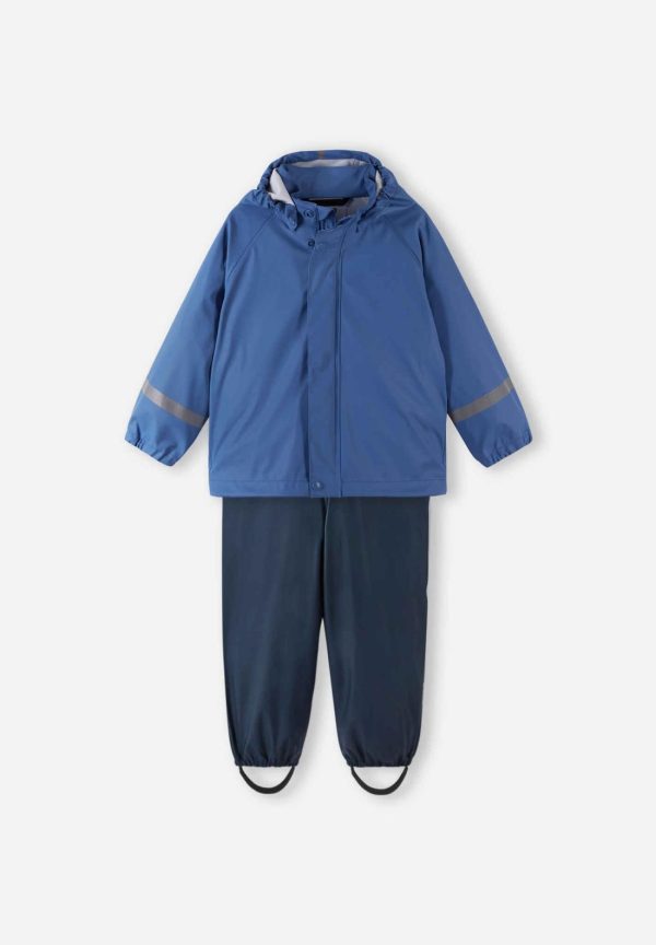 Super practical rain set. Includes a waterproof jacket and pants, both with waterproof welded seams.